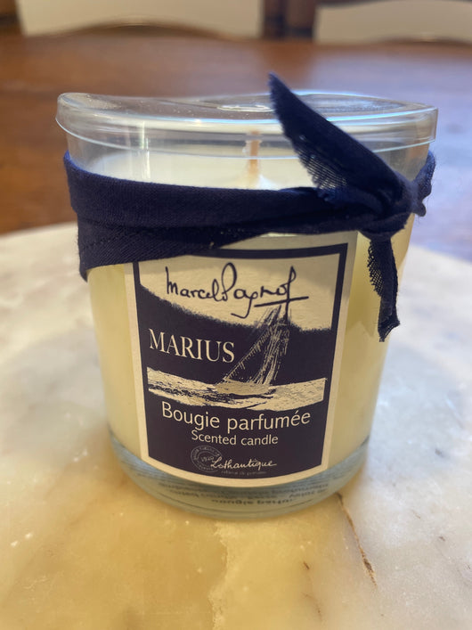 Beautiful French made candle with signature fragrance blending bergamot, lavender and wood. Comes in decorative glass jar and navy scarf.